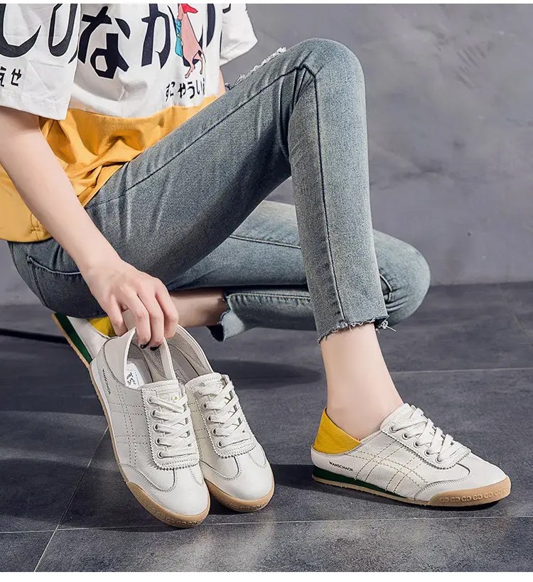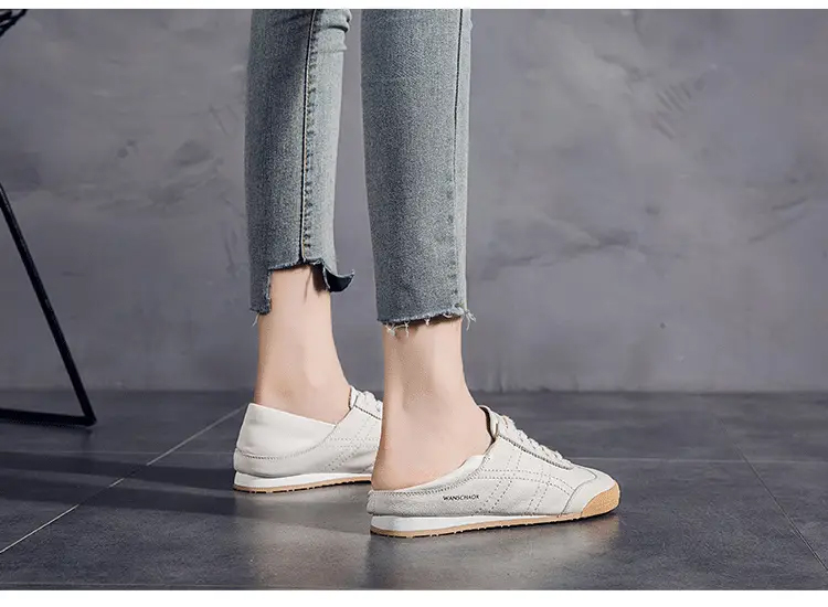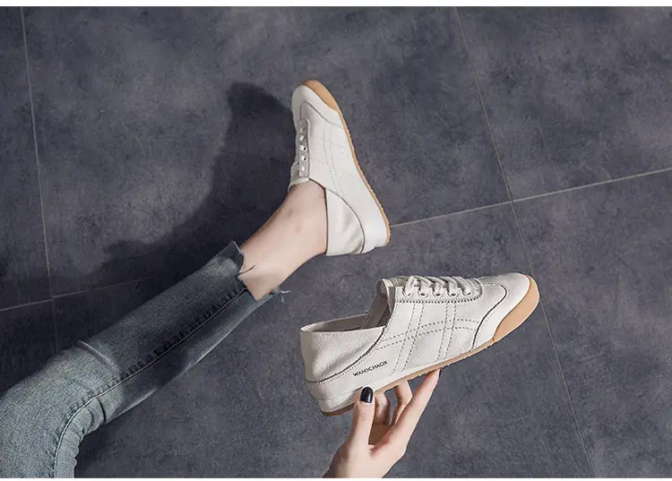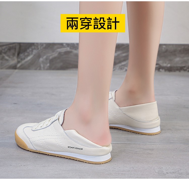 【專業慢跑鞋 復古經典】兩穿軟皮小白鞋女